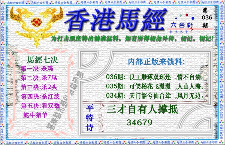 036期: 三复白圭《必杀二肖》《必杀二肖》料准又省钱!