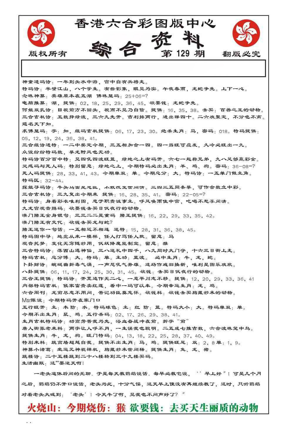 129期: 三复白圭《必杀二肖》《必杀二肖》料准又省钱!