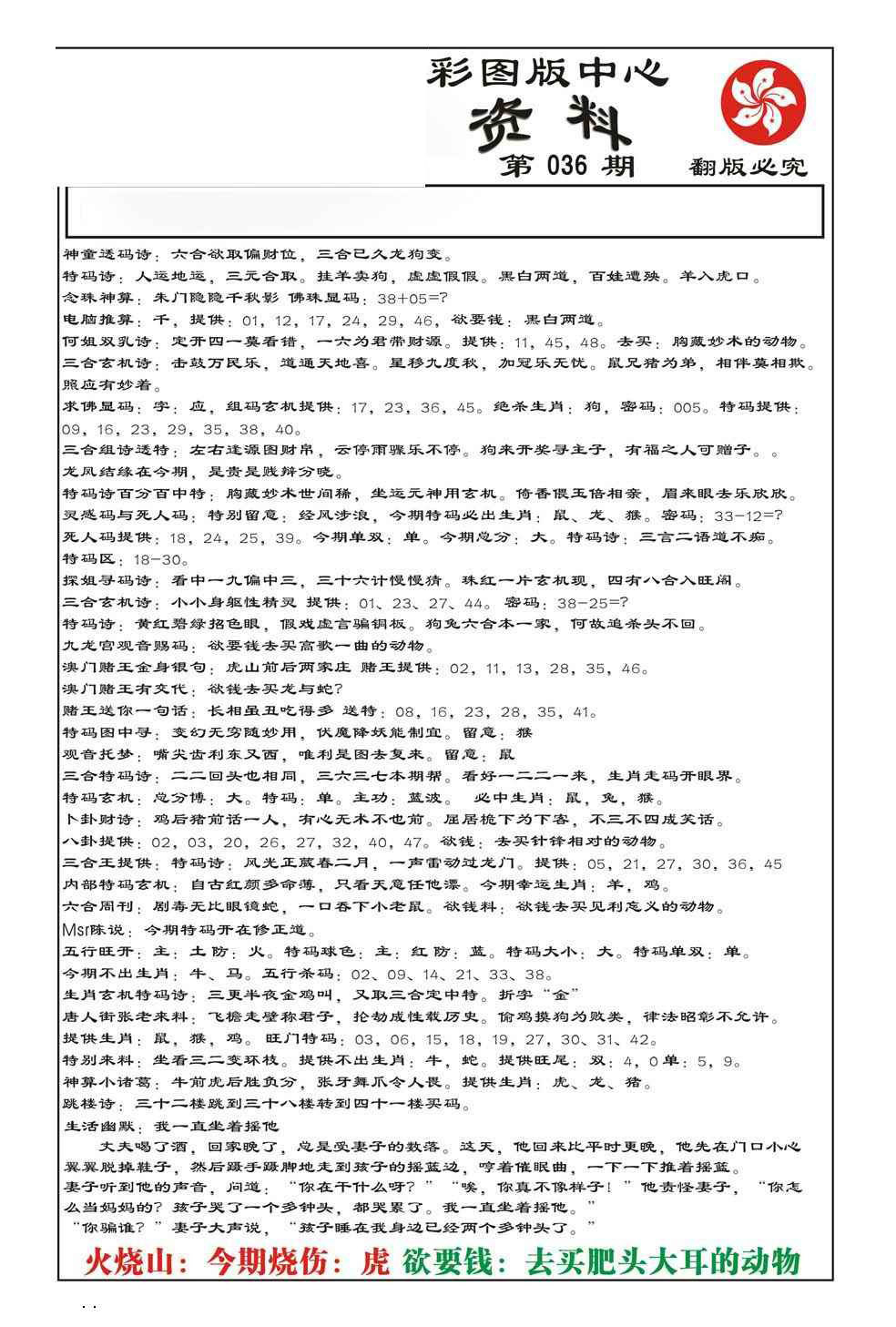 036期: 三复白圭《必杀二肖》《必杀二肖》料准又省钱!